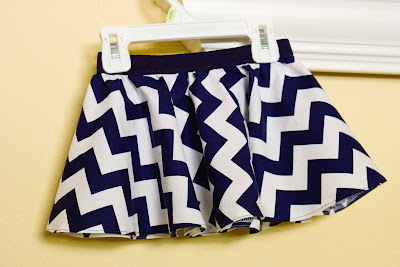 So today during the twins' first nap I decided on a few circle skirts. I have been wanting to do a circle skirt for a while now, and when I saw Jessica's on project run and play last week I knew I "had" to make one right away! I don't usually like to follow the trends... I love chevron prints and have resisted for as long as I could, but then I saw her version and knew the twins "needed" a few. Buuuut I went the lazy route and made mine from preprinted material. No piecing here. (Wasn't her's ah-mazing??) Hence, the kind of funky way my zig zags ended up. Oh well.